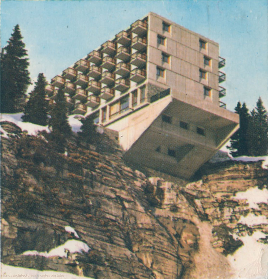 On notera que l'éditeur Cellard ne nomme pas l'architecte et que le témoignage de la correspondante est confondant, racontant son entorse au genou après trois jours de ski... mais ne parle pas des constructions dans lesquelles elle évolue... Rien à dire donc de cette modernité.